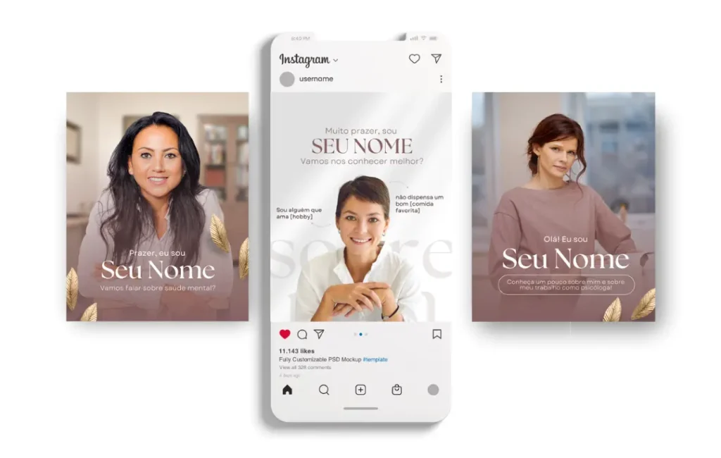 Tenha posts prontos para se apresentar de forma estratégica e conquistar a confiança do seu público! Disponível nos formatos feed retrato, carrossel e stories, perfeitos para fixar no topo do seu perfil e salvar nos destaques.